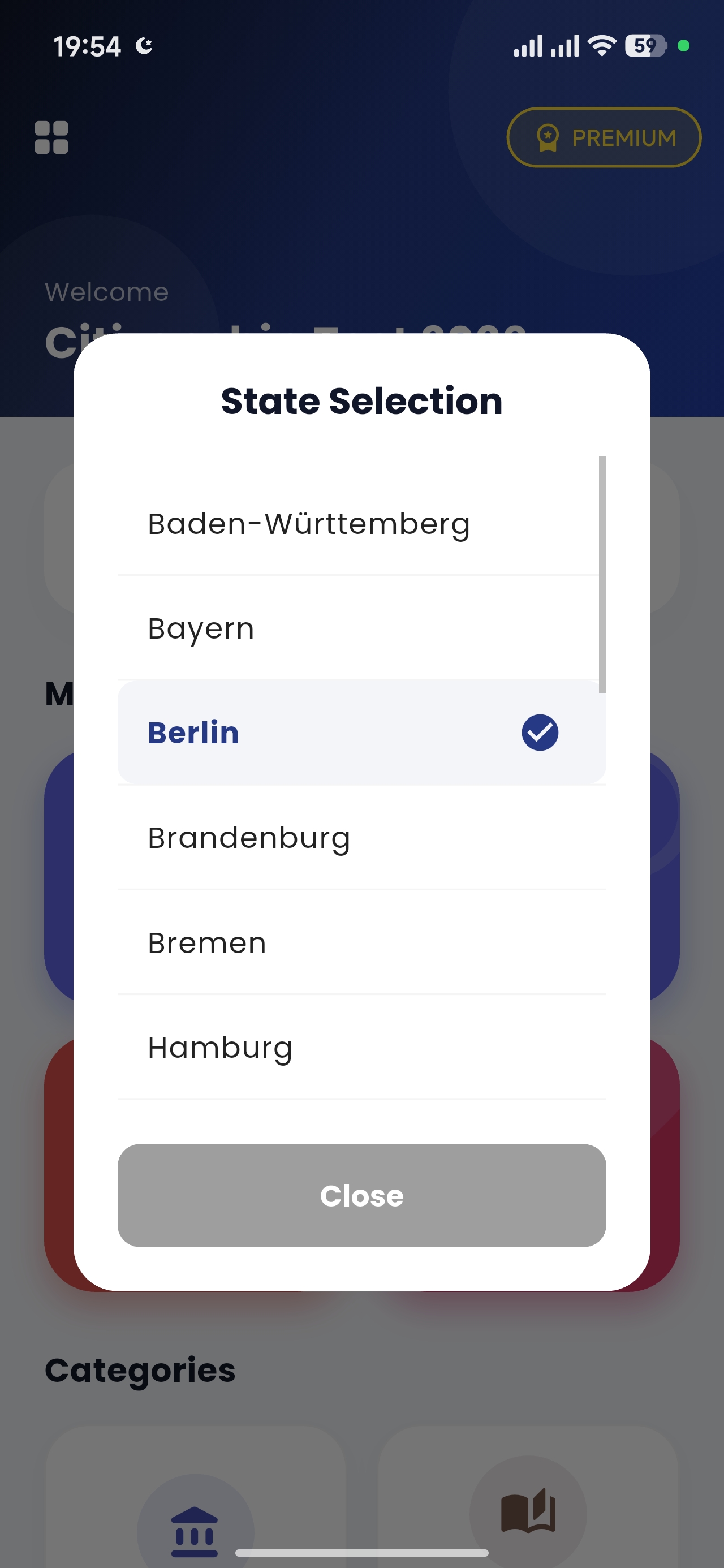 Select your federal state to begin.
